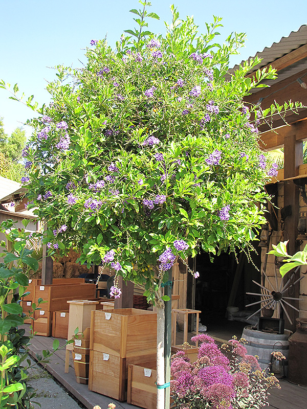 Sapphire Showers Duranta makes a fine choice for the outdoor landscape, but it is also well-suited for use in outdoor pots and containers. Its large size and upright habit of growth lend it for use as a solitary accent, or in a composition surrounded by smaller plants around the base and those that spill over the edges. It is even sizeable enough that it can be grown alone in a suitable container. Note that when grown in a container, it may not perform exactly as indicated on the tag - this is to be expected. Also note that when growing plants in outdoor containers and baskets, they may require more frequent waterings than they would in the yard or garden.