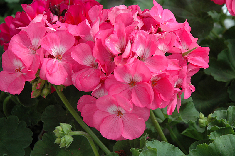 Rocky Mountain™ Pink Geranium features bold balls of lightly-scented pink flowers with white eyes at the ends of the stems from late spring to early fall. The flowers are excellent for cutting. Its tomentose round palmate leaves remain green in color with prominent brown stripes throughout the year.