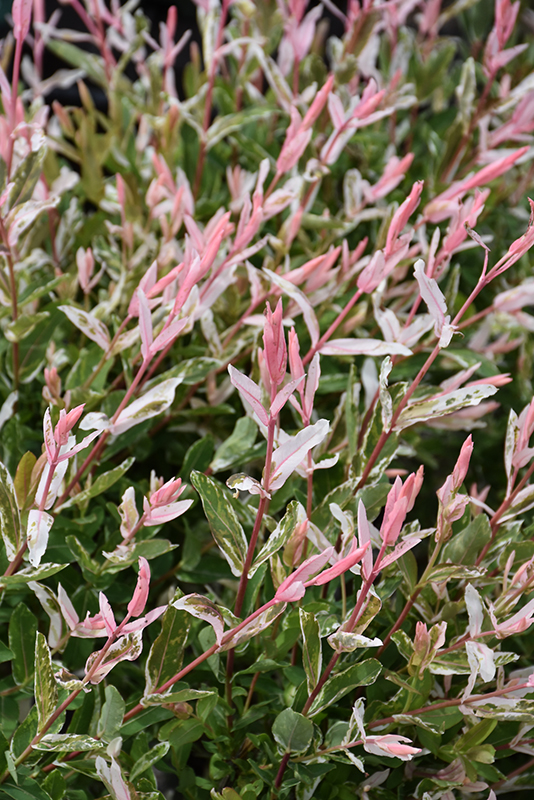Tricolor Willow has attractive white-variegated green foliage with hints of pink which emerges pink in spring on a plant with a round habit of growth. The narrow leaves are highly ornamental but do not develop any appreciable fall color. The smooth bark and brick red branches add an interesting dimension to the landscape.